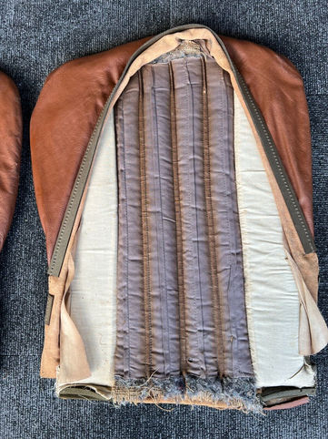 Pictured is a reddish brown colored seat back that is in excellent condition. It is a genuine OEM Mercedes leather seat cover for the back of a W108 or W111 front seat. It has been stored in a climate controlled facility for decades.